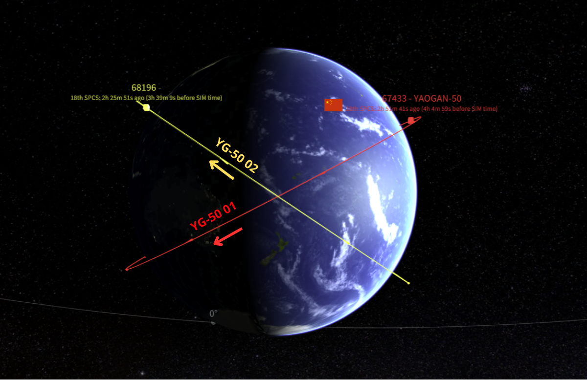 YG-50 02’s initial SMA was ~838.7km which China increased to 885.7km by 19 Mar. YG-50 01 increased its SMA ~133km during its first 5 days on orbit and has been operating at 952.4km for the past 60 days. While the two YG-50 satellites have the same inclination they are not co-planar. YG-50 02 has a ~112° west RAAN offset with YG-50 01.