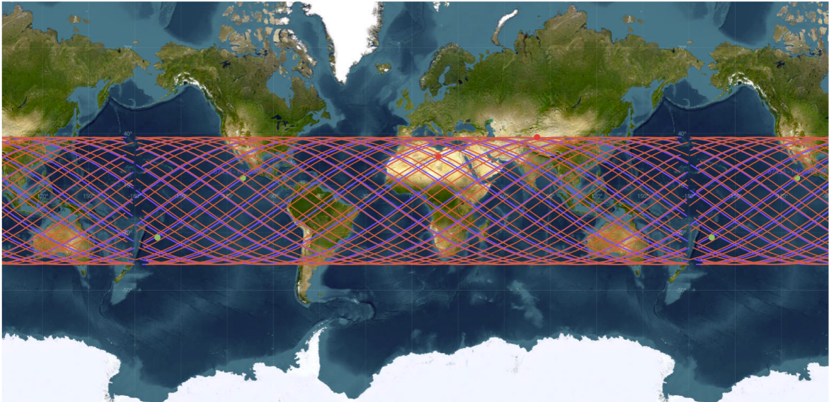 Ground Tracks of YG-50 01 & 02. With their 142° orbit inclination both satellites have coverage from 38°N to 38°S (saberastro.com)