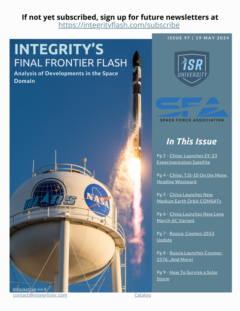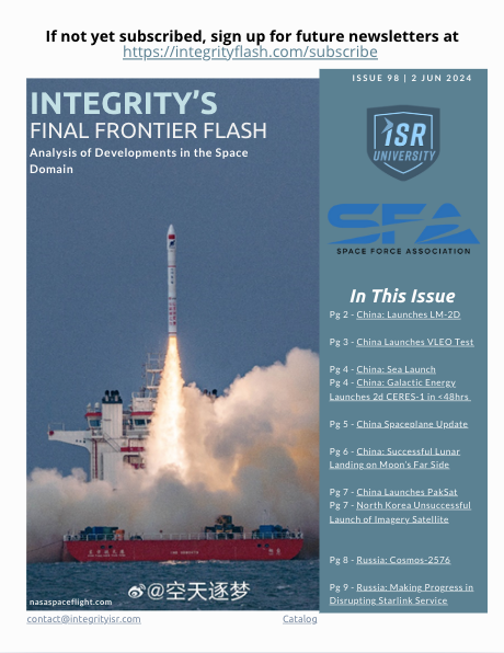 In this issue of Integrity Flash (Edition 97), we cover a diverse mix of Chinese satellite deployments, new launch vehicles, and Russian space operations: